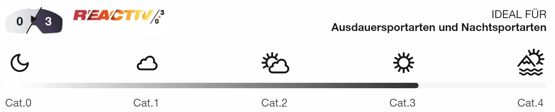 - Ultra-vielseitig (Kat. 0 bis 3): passt sich automatisch an wechselnde Lichtverhältnisse an – von voller Sonne bis in die Nacht.