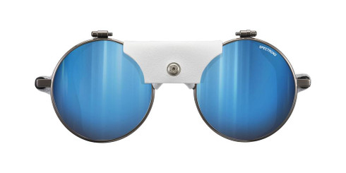 Our traditional mountaineering sunglasses are timeless classics symbolic of our history with the mountains. Rock stars, mountaineers, and Julbo fans from all walks of life have praised them to the skies. To celebrate our 125th anniversary and to give our fans the sunglasses they expect, we have reissued the legendary Vermont. This is our traditional mountaineering model with round lenses and leather side shields.