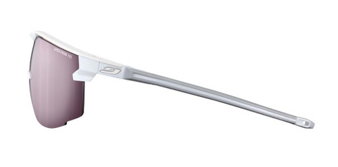 Julbo pushes the limits of performance with the tapered outline of its ULTIMATE sunglasses model. Each line and detail of this model's geometry are designed to serve one goal only: to give you ultimate freedom in your sport. CustomFIT temples with precise and long-lasting adjustment, combined with a Grip Tech structure, produce a tailor-made grip and a lightweight spec. Fitted with a 3D Nose, the sunglasses offer flawless hold when you're working flat out, with or without a helmet. A panoramic lens creates an aggressive look while giving you protection and visual comfort thanks to REACTIV Photochromic lenses. Now it's your turn to push the limits!