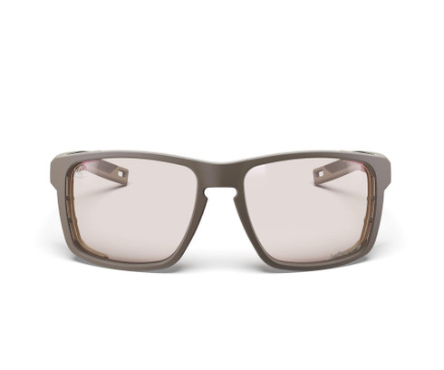 The SHIELD model in the Kilian Jornet Series adopts earthy hues inspired by Norwegian landscapes: open country where light and glare demand uncompromising protection. An understated and powerful look, designed for the demanding practice of mountain sports. The Kilian logo on the top of the frame symbolizes a collaborative venture based on real-life performance and reliability at altitude. Fitted with the REACTIV 0-4 High Contrast lens (cat. 0 to 4), it offers maximum range: totally clear in the shade and intensely protective in bright sunlight. Ideal for high altitudes, exposed ridges and high-glare environments. The side shields which this frame is named after protect against wind, cold and glare. Built for altitude.