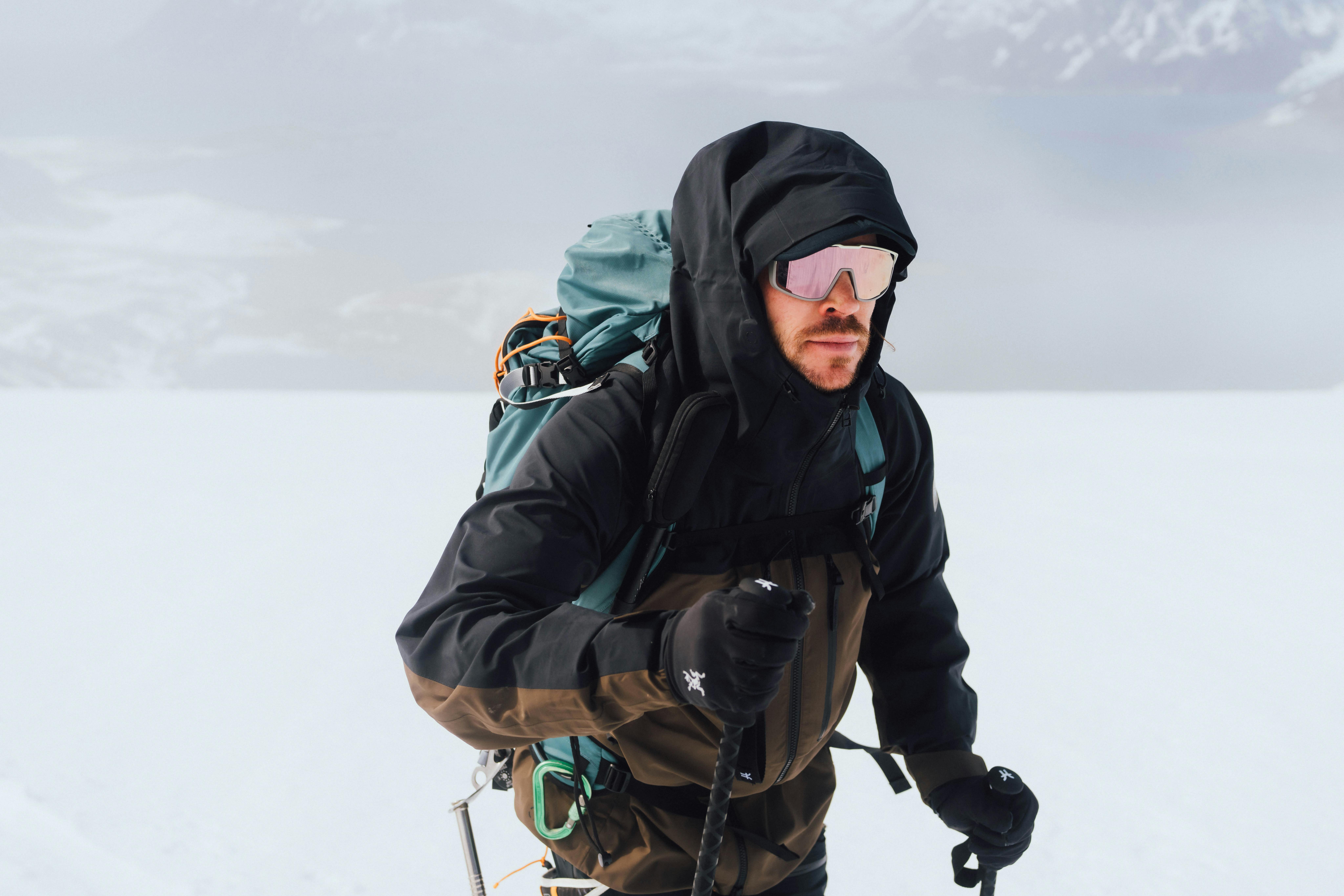 Je tombe dans une sorte de calme rythmé alors que nous remontons le glacier en peaux de phoque, chaque pas mesuré et régulier. Le vent hurle si fort qu'il engloutit toute chance de conversation, me laissant dans une bulle de silence brisée seulement par le frottement des skis et le craquement de la glace. Il y a une étrange paix là-dedans, une solitude si complète qu'elle semble presque intemporelle.